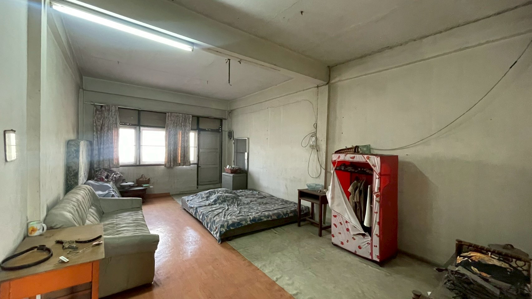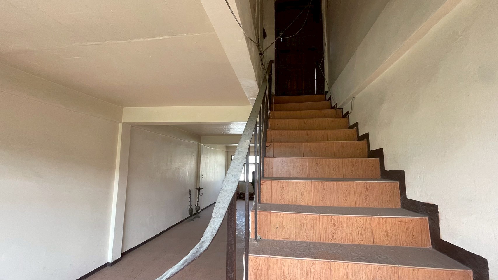 ปูพื้นกระเบื้อง บันไดชั้น 2 ไปชั้น 3 เป็นไม้ นอกนั้นเป็นปูน