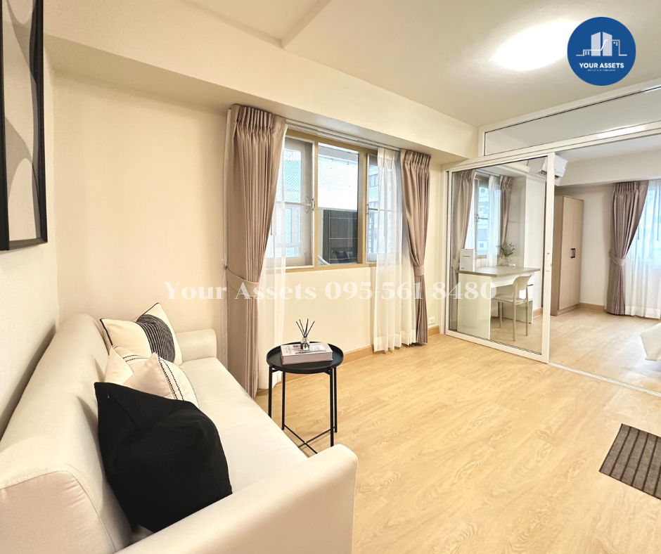 ห้องขนาดกว้าง กั้นห้องนอน ปูพื้น SPC แท้ เฟอร์นิเจอร์ใหม่ทุกชิ้น ฟังก์ชันครบ